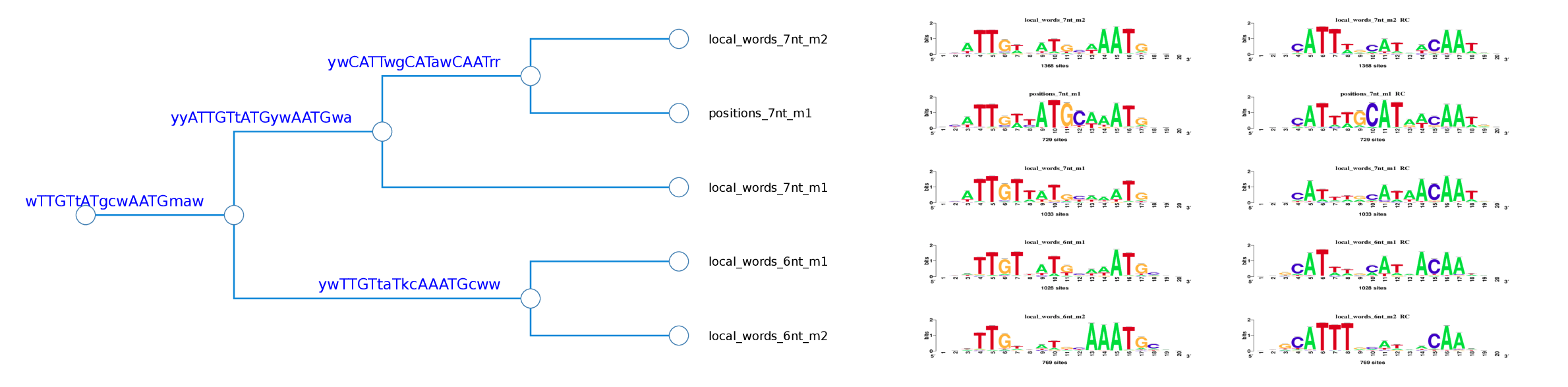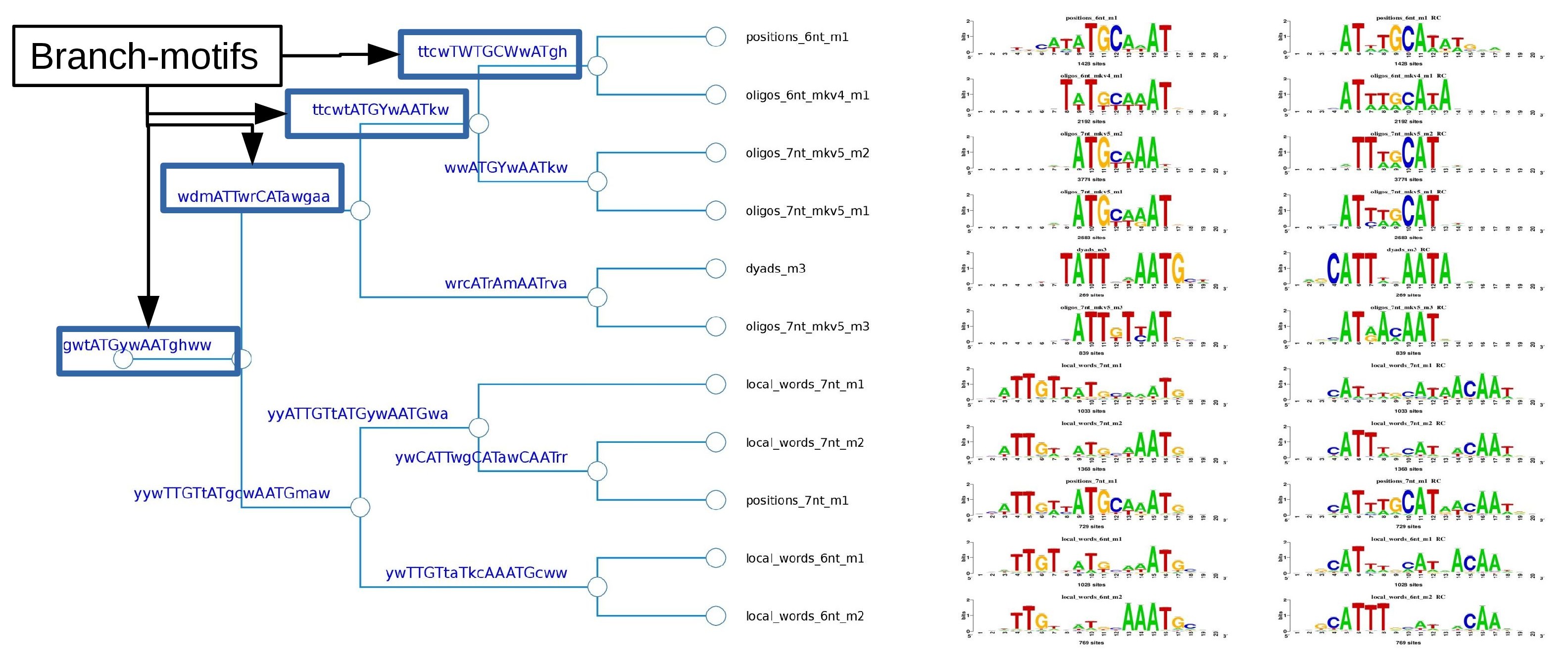 Figure 6. The logo tree of cluster one showing the branch-motifs