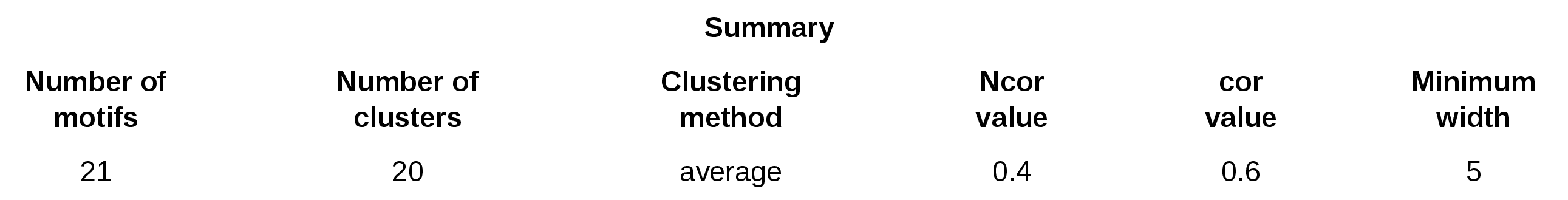 Figure 9. Summary table of an example of matrix-clustering results with randomized motifs