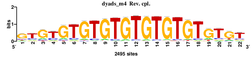 | : [matrix] saGCTGTCAaavg : [matrix] acgCACGCACGsrc : [matrix] CACACAYACACAC : [matrix] amacAAACAAAma : [matrix] agaGmGAGmGAGag |