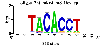: [matrix] cyCCCACCCcc : [matrix] cwCACTCwCTywc : [matrix] aaCAACAAACAACmm : [matrix] mgCGAACGAgm : [matrix] ycCTTACCTyy 32 more motifs |