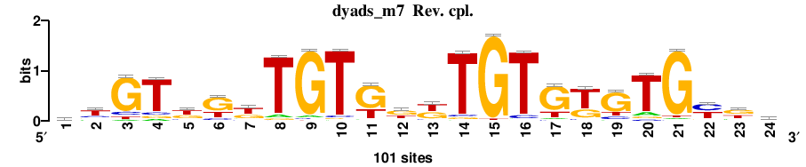 | : [matrix] haTACATACrh : [matrix] caCACrCACasac : [matrix] gaGAGCGAGag : [matrix] taTAkATAya : [matrix] cyACTCAChcy |