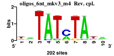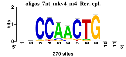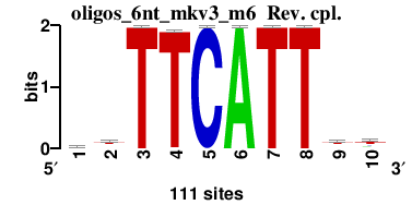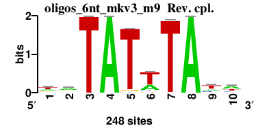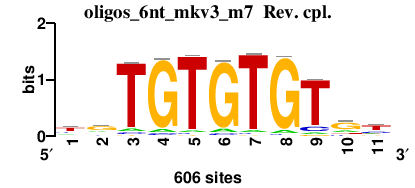 : [matrix] aaAATGAAar : [matrix] acACACACAca : [matrix] smAACTGArw : [matrix] waTAwATAtw : [matrix] vrACGAACGAav 17 more motifs |